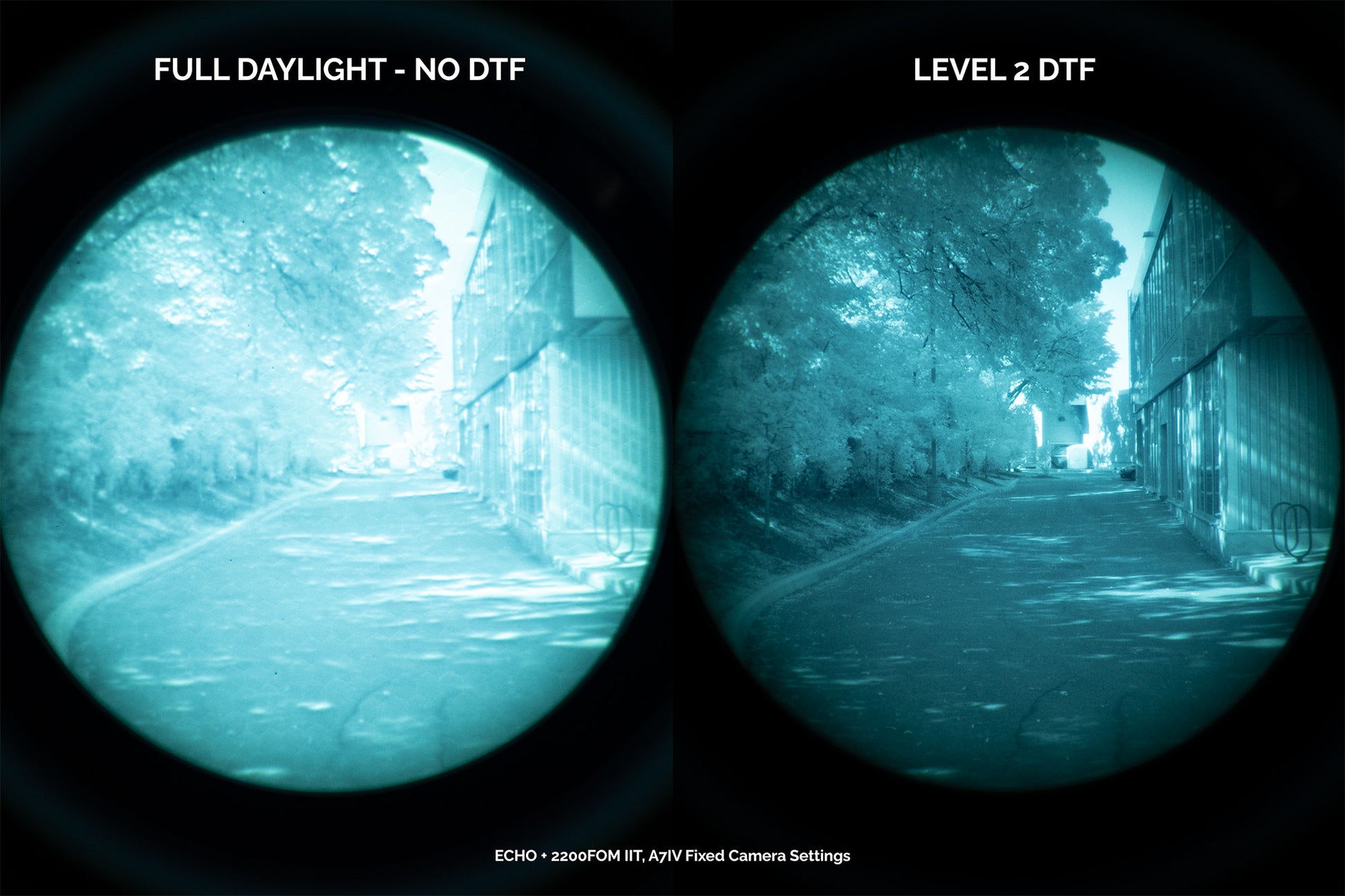 - For NNVT, Photonis ECHO/ECHO+ and other Gen2+ image intensifiers, Level 1 DTFs can be used indoors in average-lit rooms but will appear as if the lights are off. Not recommended for outdoor use.