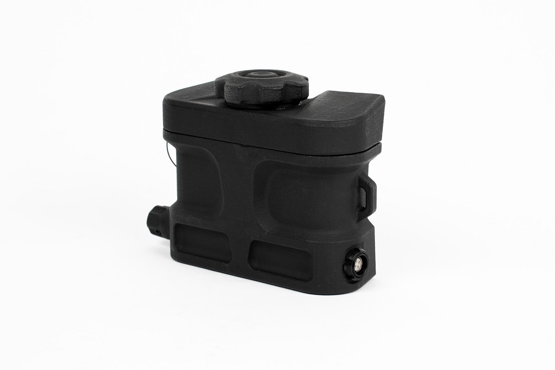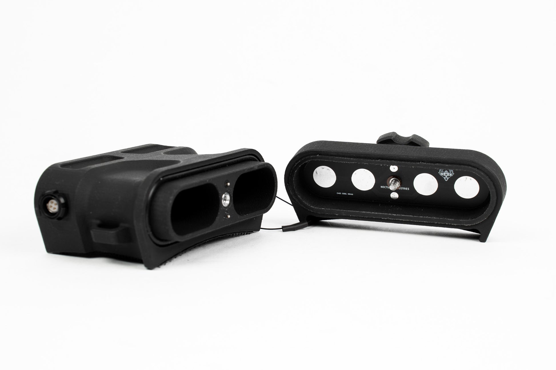The Bat pack will provide auxiliary power to your binocular device using 4x CR123A’s for a total runtime of 96 hours. The power switch allows the user to switch between the 2 different power banks which each hold two CR123A’s. It uses a Fischer 4-pin port on the side of the pack and can come with a Fischer to LEMO 4-pin 0B LEMO cable which is the standard port on a RNVG/RPNVG/RNVG-A/etc., or a Fischer to LEMO 4-pin 00B LEMO cable which is standard for the Katana/Manticore/Daisho/etc., and any of the ruggedized series goggles.