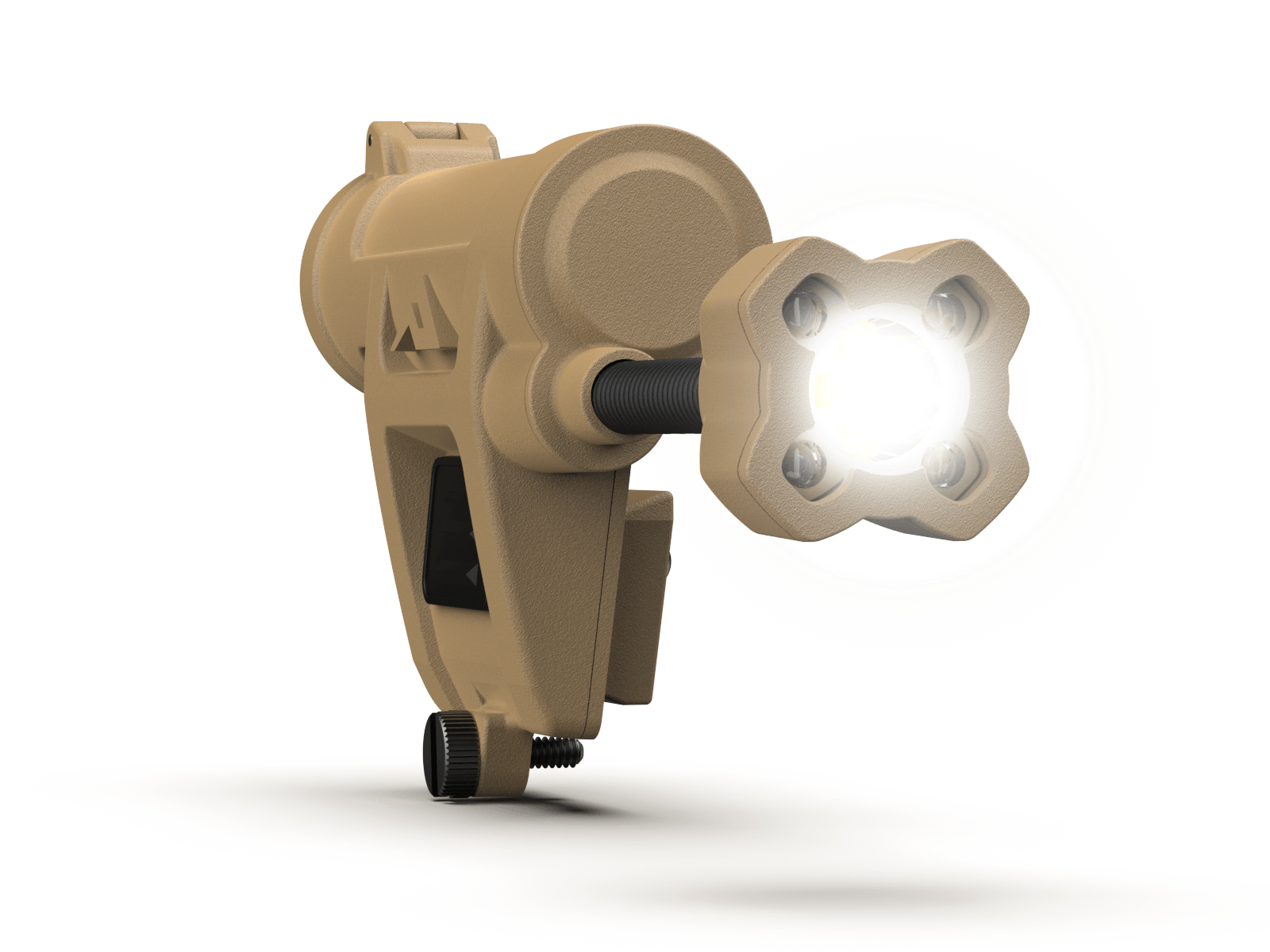 Dual-Fuel Multi-Color Helmet Light. Powered by a single CR123 lithium or one AA battery, the Princeton Tec Charge X is the ultimate all-in-one helmet lighting solution. This light features a 100 lumen dimmable white light, along with red, green, blue, and IR LEDs. Charge X’s simple programmability allows for setting and changing the order in which the colored LEDs appear upon activation for highly personalized performance. This helmet mounted light features an upgraded version of Princeton Tec’s signature flexible boom that allows for easy and accurate spot illumination that adapts to the task at hand. Lastly, Charge X’s small footprint occupies minimal “rail estate,” leaving plenty of room for other vital rail attachments.