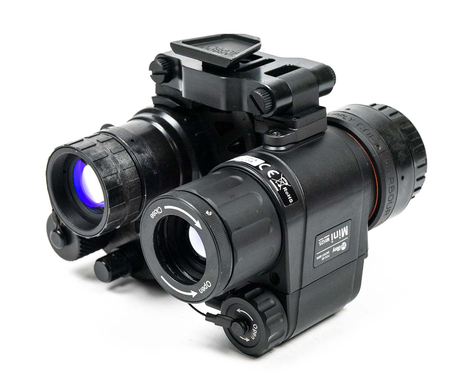 The Cold Harbour MH14 Dual Bridge (MH14DB) is a rugged full-metal bridge system that will allow you to quickly put two PVS-14s together to instantly create a binocular night vision system or one PVS-14 and one InfiRay MH25v2 (via the optional MH25 shoe) to create a true hybrid, full-spectrum system. Users will be able to have the flexibility of two independent monoculars, or if one monocular is not used, one of the arms could be removed to create a simple J-arm for one eye. This is perfect for users who own a PVS-14 and are contemplating adding another in the future, but do not want the added hassle of buying and selling a J-arm.