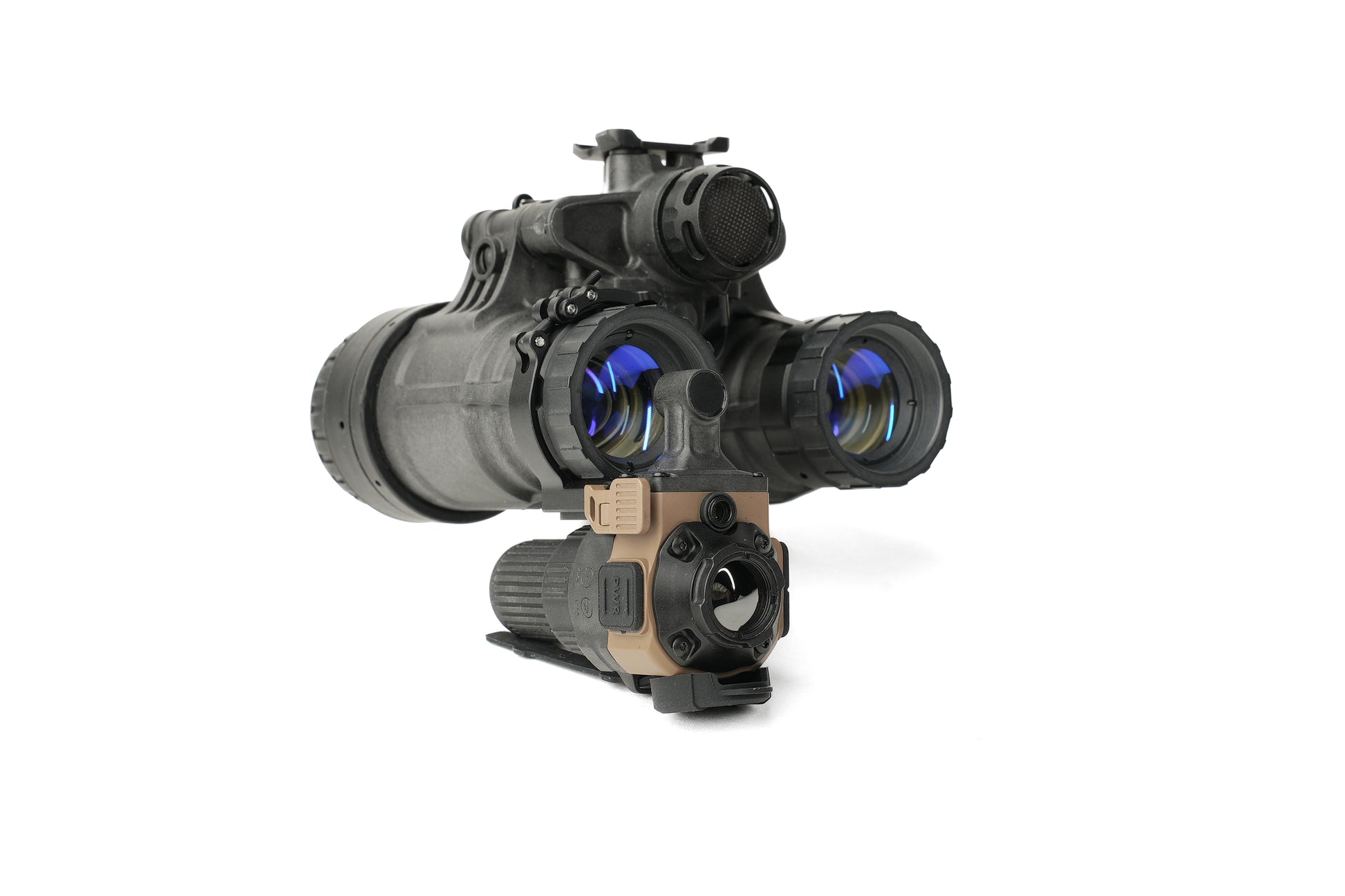 The JerryC Pro comes ready to attach to any device that has standard PVS-14 pattern optics via an adjustable ring-clamp and instantly gives thermal detection capabilities out to 700+ metres.