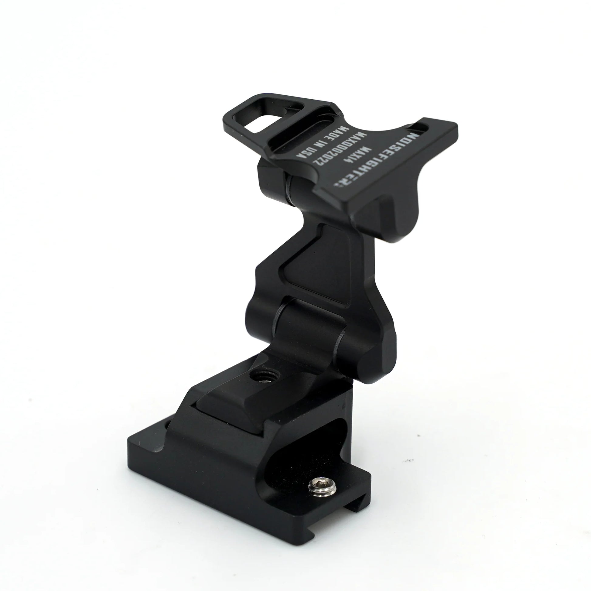 RMAX14™ is a rigid, incredibly lightweight, and all-metal night vision J-arm designed to mount mini-rail equipped thermal monoculars such as the FLIR Breach and Infiray MH25. It includes a rotating knuckle which provides a tight stow against the helmet and also allows the monocular to be temporarily swung away from the eye. At 1.4 oz total, it weighs less than a polymer milspec J-Arm, yet its structure is composed entirely of the highest-performing 7075-T6 aluminum alloy for industry-leading durability.